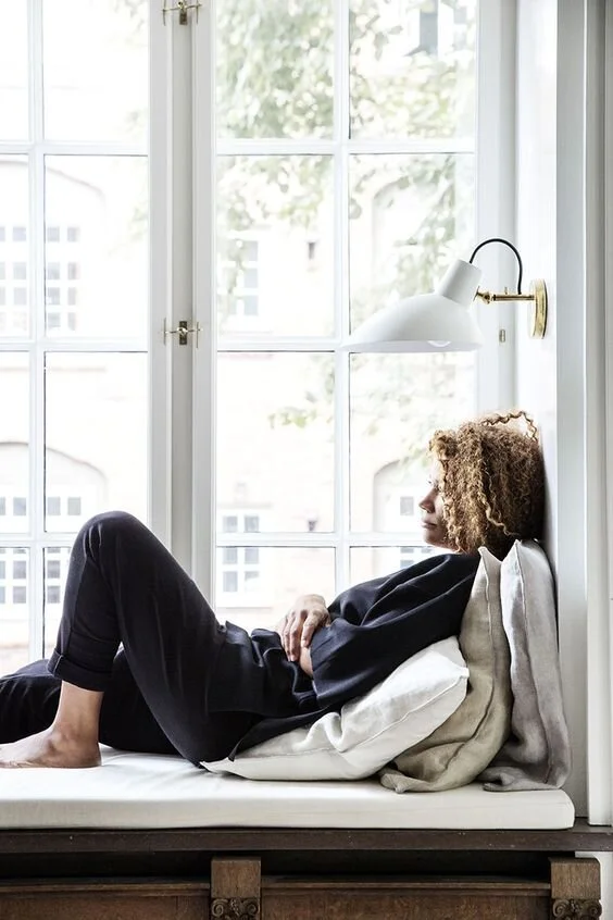 Signature moments like falling into a clean white bed, curling up with a book and a mug,